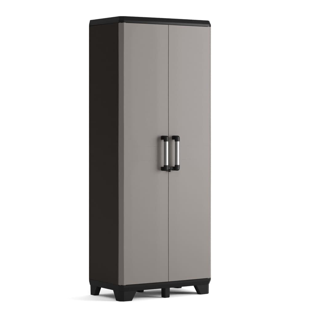 Ta omara za shranjevanje Pro znamke Keter ima eleganten sodoben minimalističen videz, črno-sivo strukturo, 4 nastavljive police in kovinsko palico v polici. Omara je enostavna za vzdrževanje in zelo varna zahvaljujoč vratom, ki jih je mogoče zakleniti.