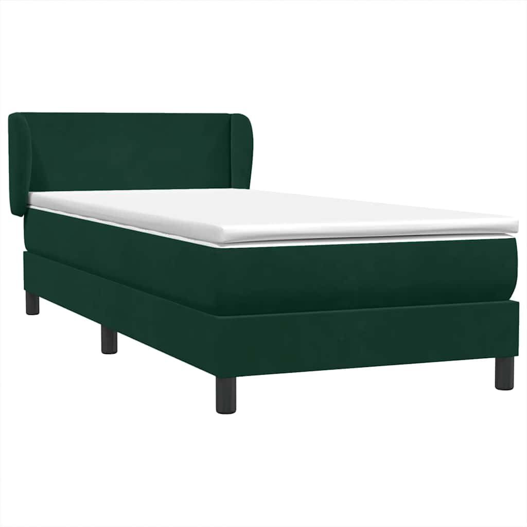 vidaXL Box spring postelja z vzmetnico temno zelena 90x220 cm žamet
