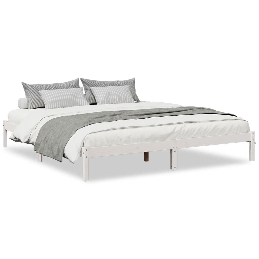 vidaXL Daljši posteljni okvir brez vzmetnice bel 180x210 cm borovina