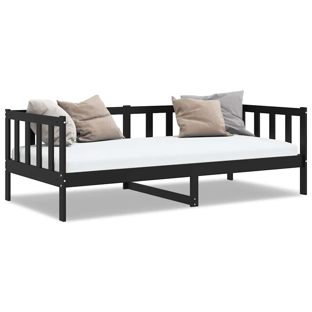 vidaXL Dnevna postelja črna trdna borovina 90x200 cm