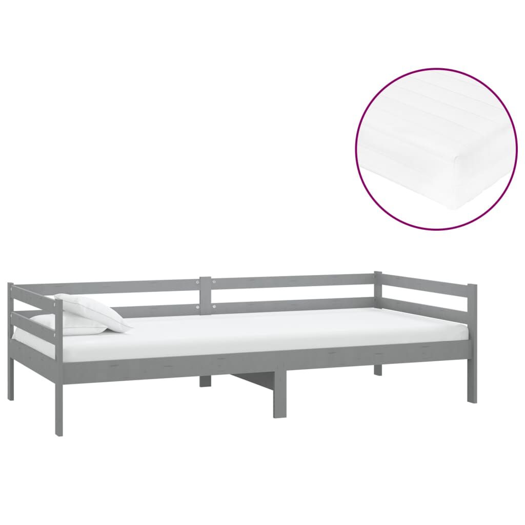 vidaXL Dnevna postelja z vzmetnico 90x200 cm siva trdna borovina