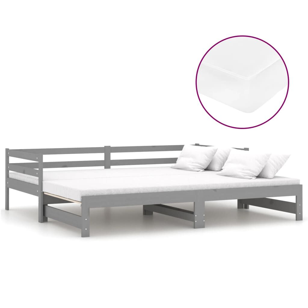 vidaXL Izvlečna dnevna postelja 2x(90x200) cm siva trdna borovina