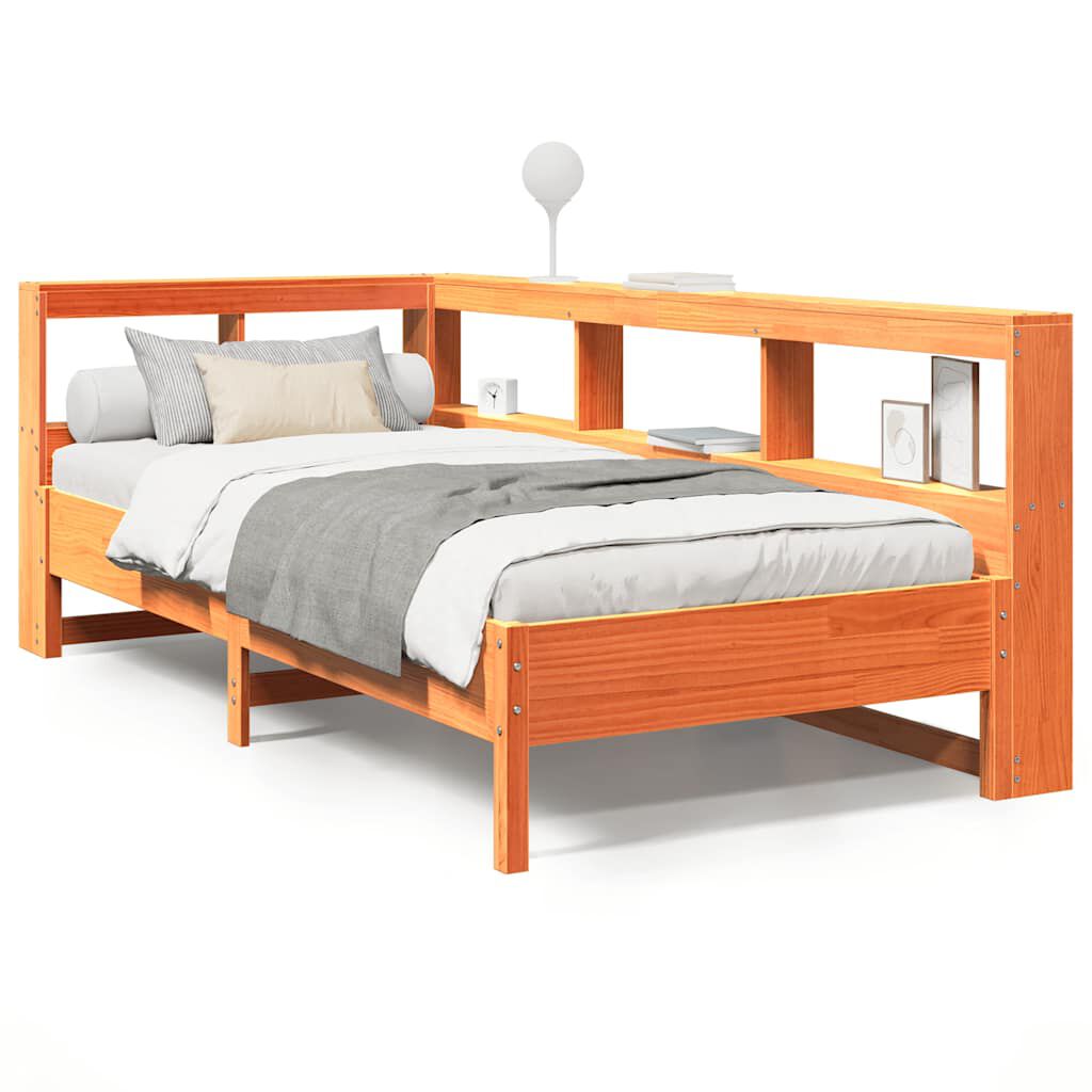 vidaXL Knjižna postelja brez ležišča vošč. rjava 90x200 cm borovina