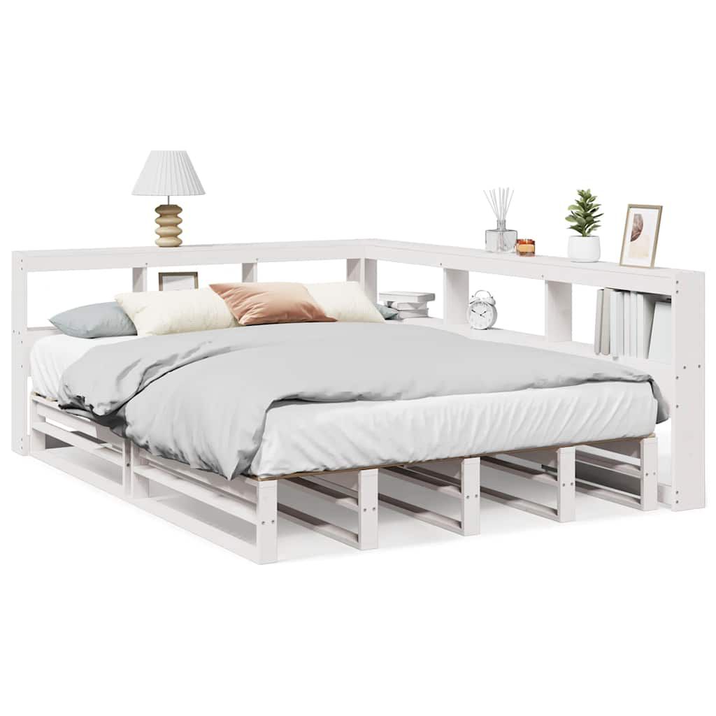 vidaXL Knjižna postelja brez vzmetnice bela 160x200 cm trdna borovina