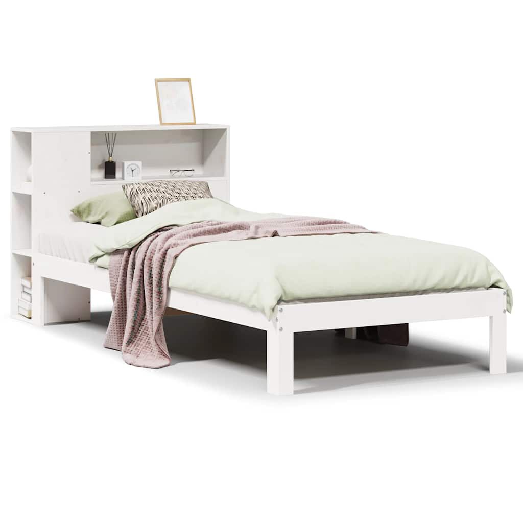 vidaXL Knjižna postelja brez vzmetnice bela 75x190 cm trdna borovina