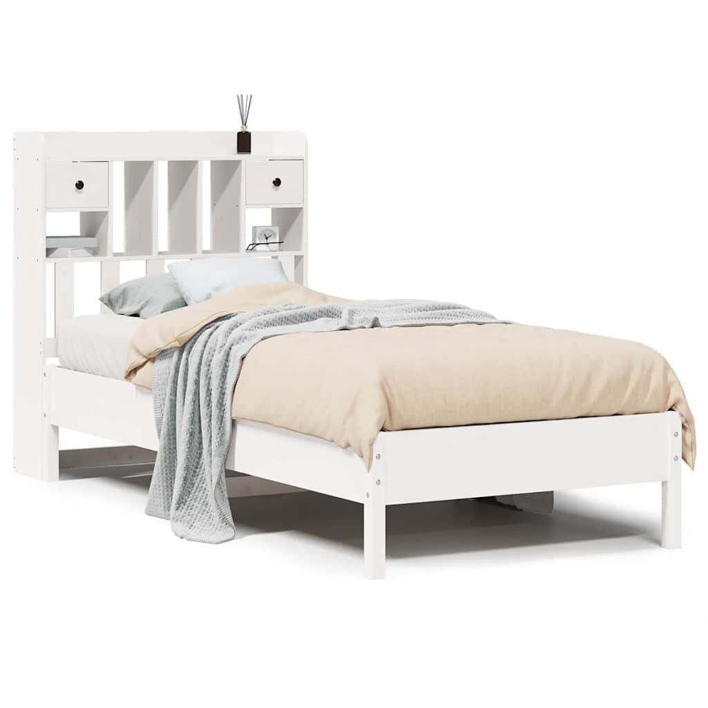 vidaXL Knjižna postelja brez vzmetnice bela 75x190 cm trdna borovina