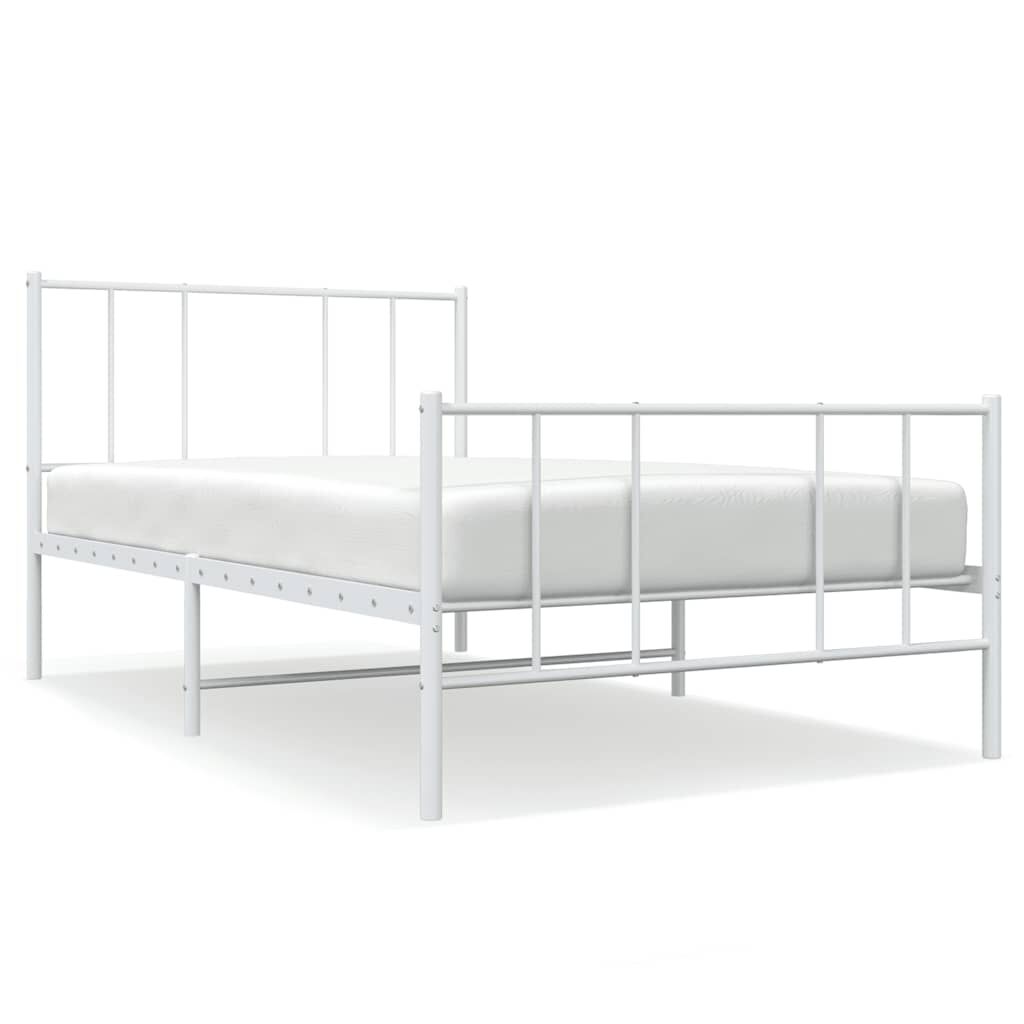 vidaXL Kovinski posteljni okvir z vzglavjem in vznožjem bel 100x200 cm
