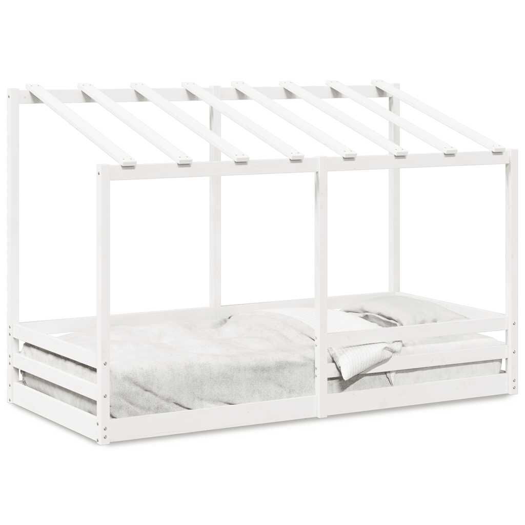 vidaXL Otroška postelja s streho bela 100x200 cm trdna borovina