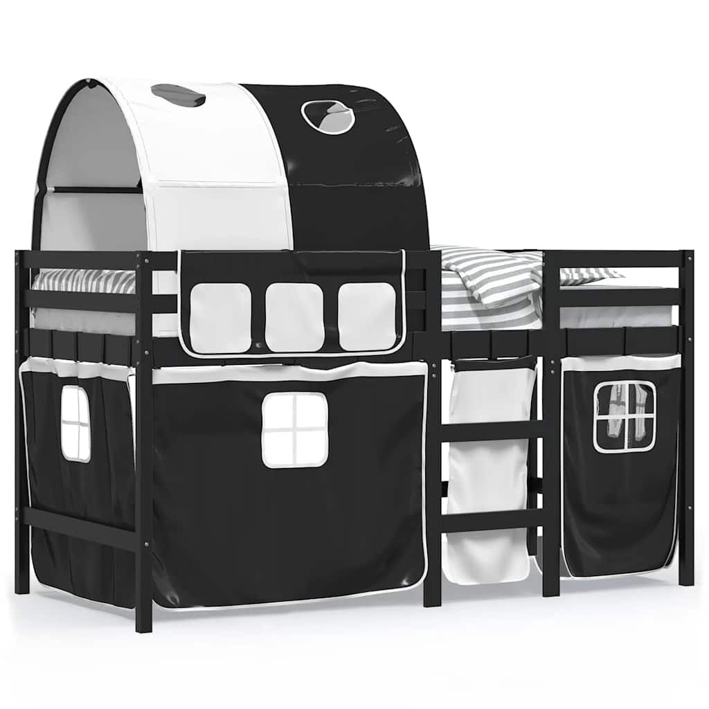 vidaXL Otroški pograd s tunelom bel in črn 90x190 cm trdna borovina