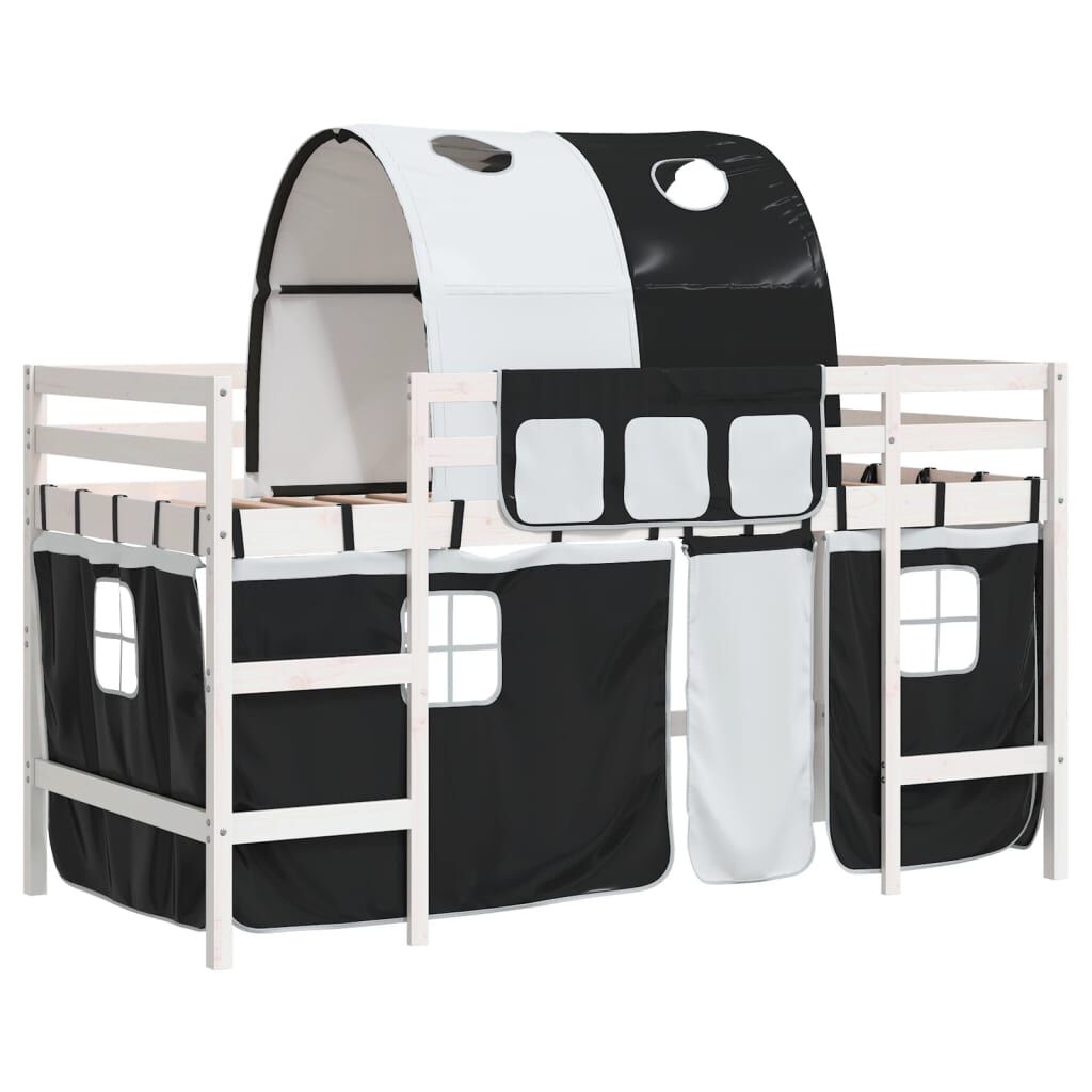 vidaXL Otroški pograd s tunelom bel in črn 90x200 cm trdna borovina