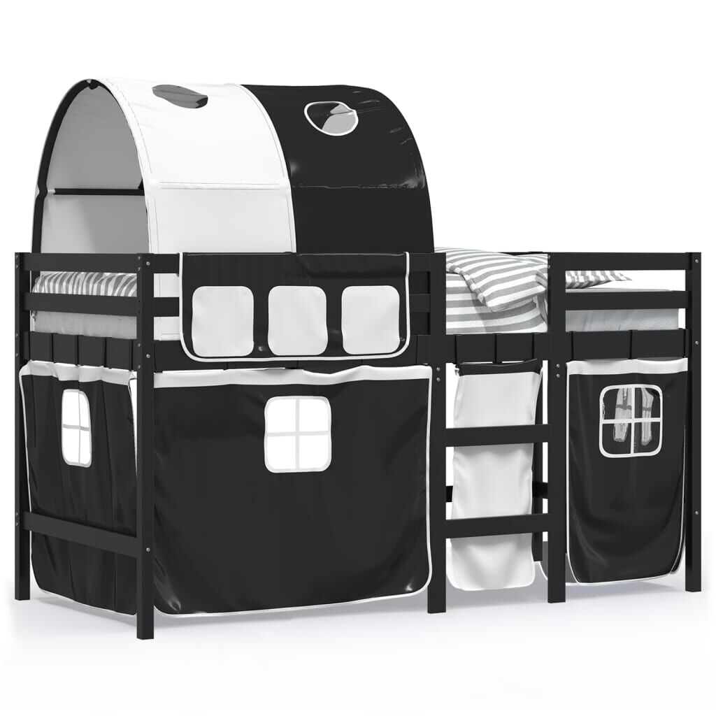 vidaXL Otroški pograd s tunelom bel in črn 90x200 cm trdna borovina