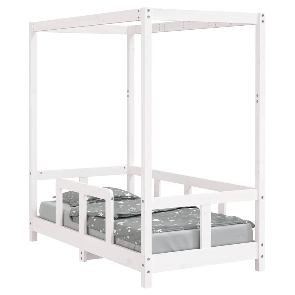vidaXL Otroški posteljni okvir bel 70x140 cm trdna borovina