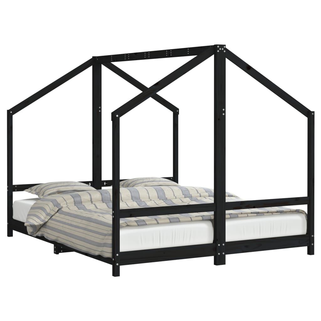 vidaXL Otroški posteljni okvir črn 2x(80x200) cm trdna borovina