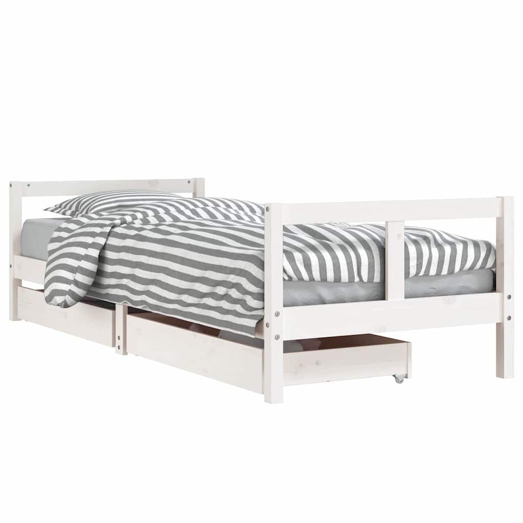 vidaXL Otroški posteljni okvir s predali bel 80x200 cm trdna borovina