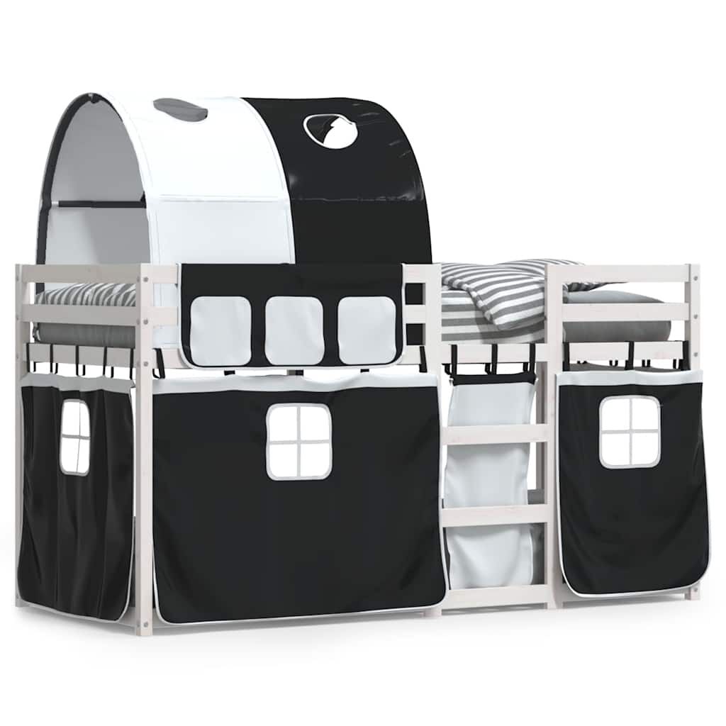 vidaXL Pograd z zavesami bel in črn 90x190 cm trdna borovina