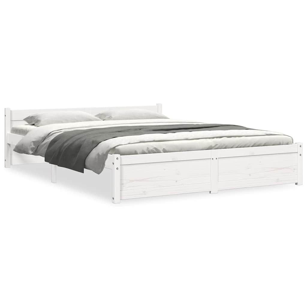 vidaXL Posteljni okvir bel iz trdnega lesa 135x190 cm