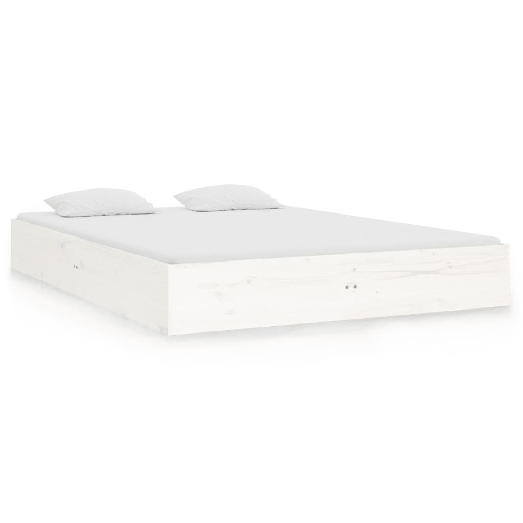 vidaXL Posteljni okvir bel iz trdnega lesa 135x190 cm