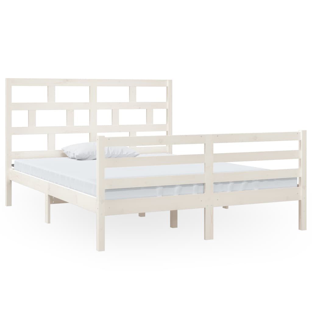 vidaXL Posteljni okvir bel iz trdnega lesa 150x200 cm