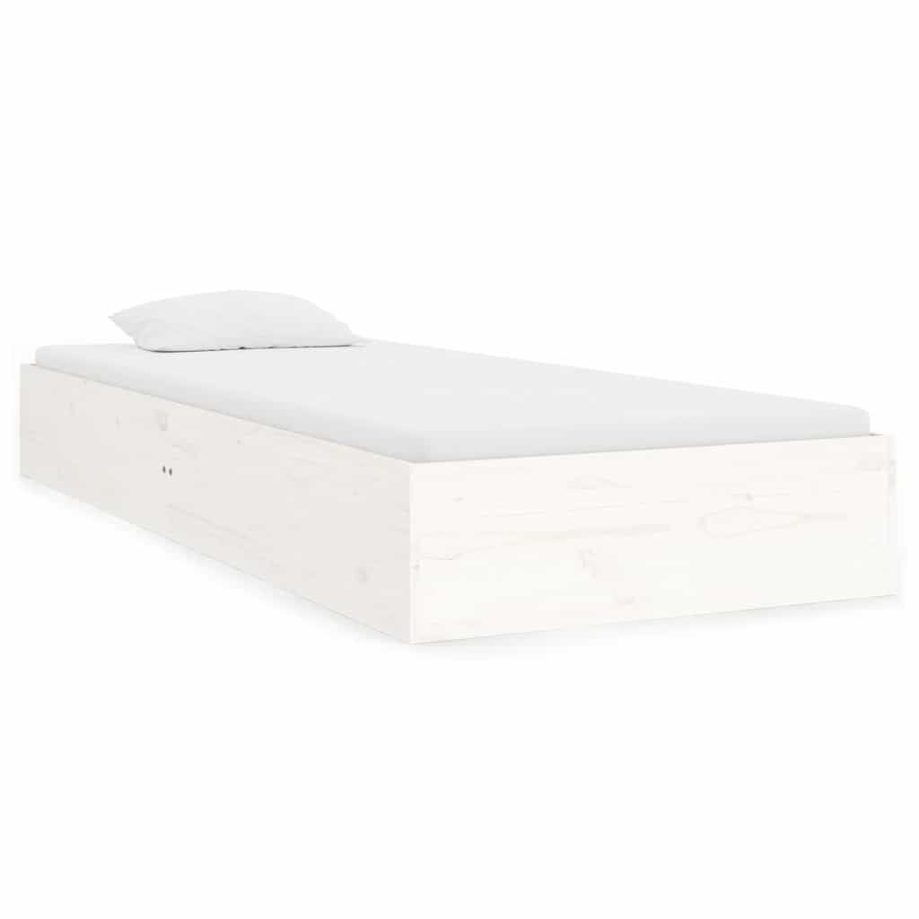 vidaXL Posteljni okvir bel iz trdnega lesa 75x190 cm