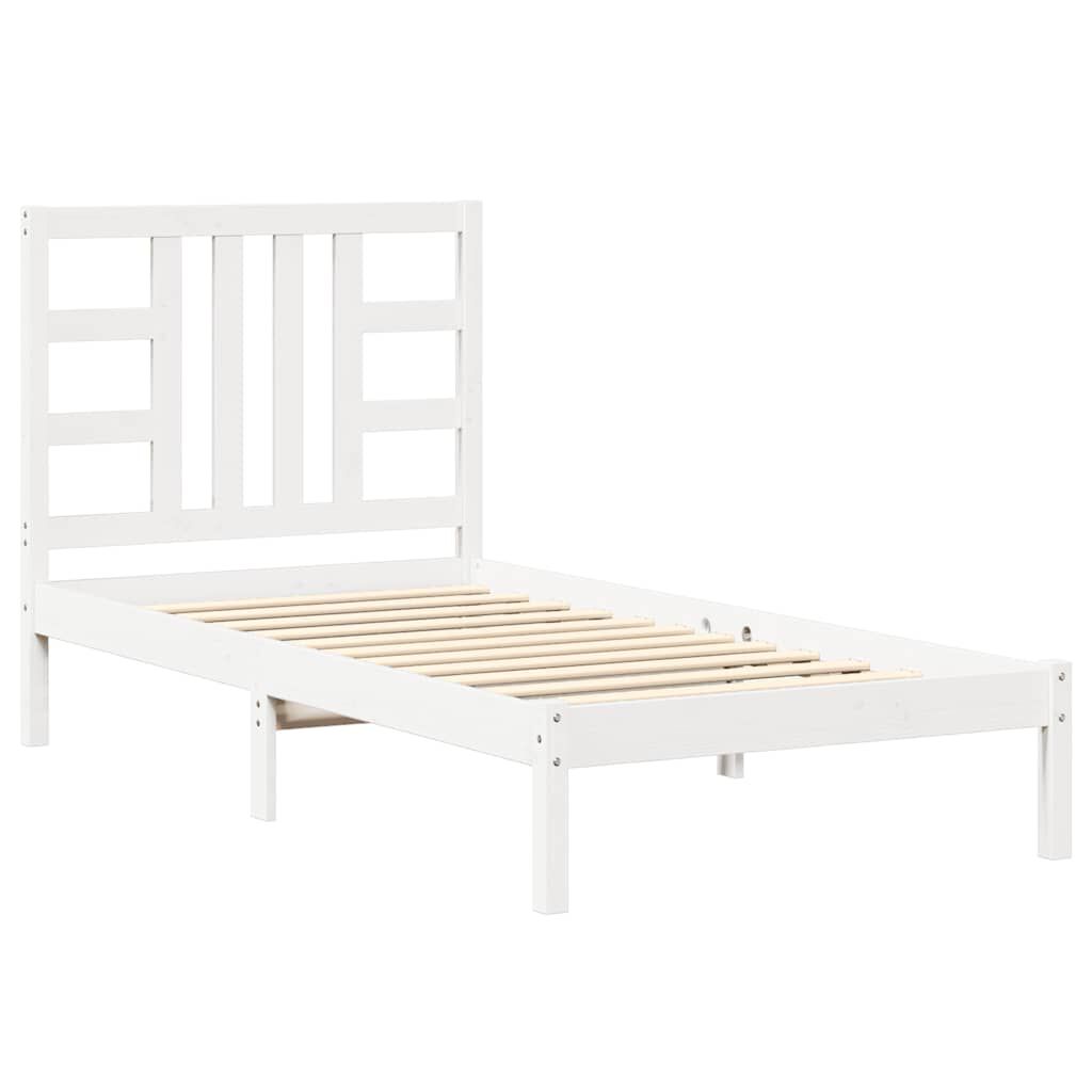 vidaXL Posteljni okvir bel iz trdnega lesa 90x190 cm