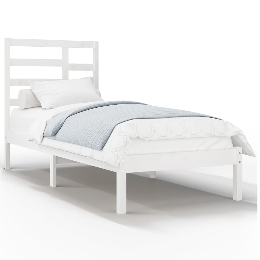 vidaXL Posteljni okvir bel iz trdnega lesa 90x190 cm