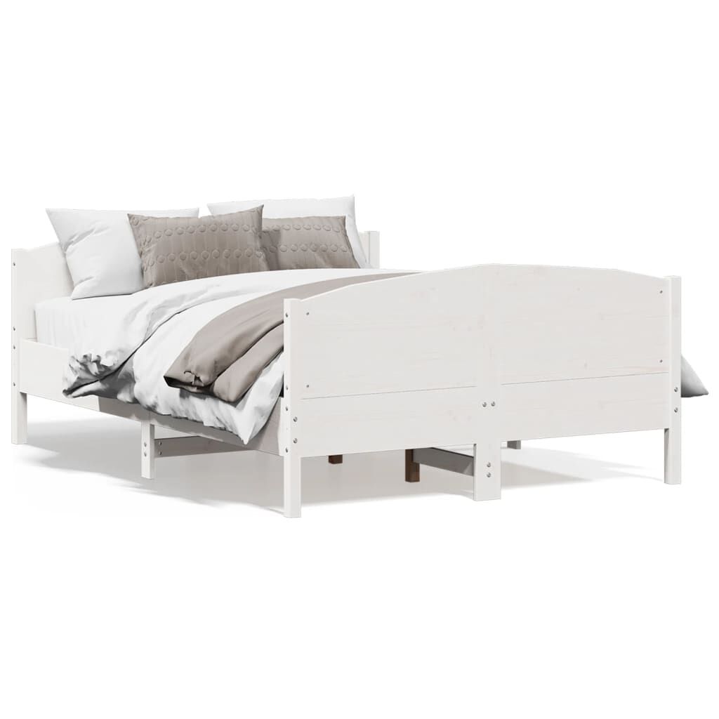 vidaXL Posteljni okvir brez vzmetnice bel 140x190 cm trdna borovina