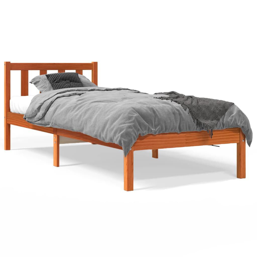 vidaXL Posteljni okvir brez vzmetnice voščeno rjav 75x190 cm borovina