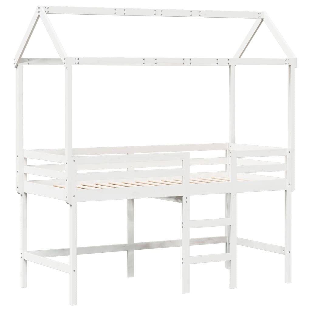 vidaXL Posteljni okvir z lestvijo in streho bel 80x200 cm borovina