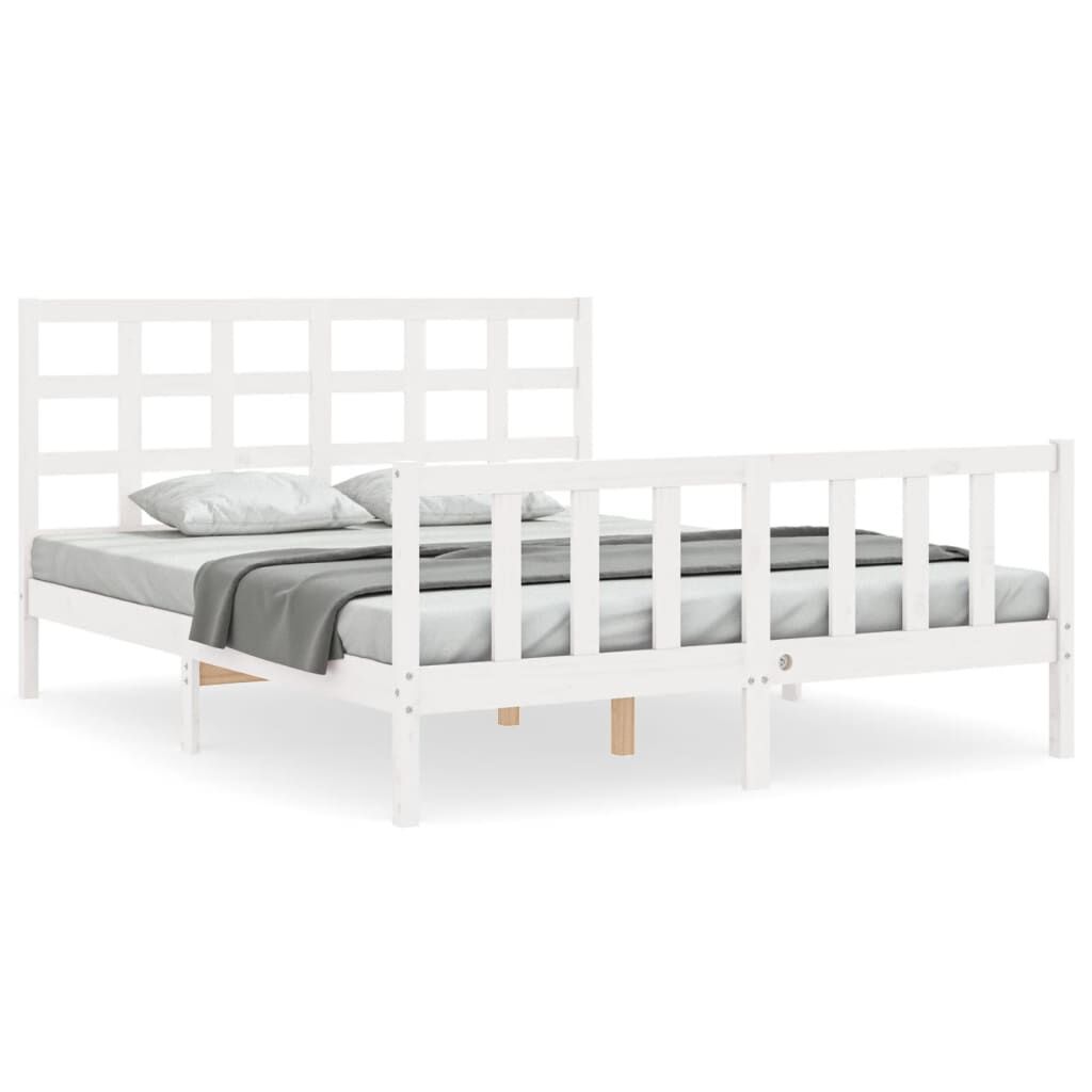 vidaXL Posteljni okvir z vzglavjem bel trden les
