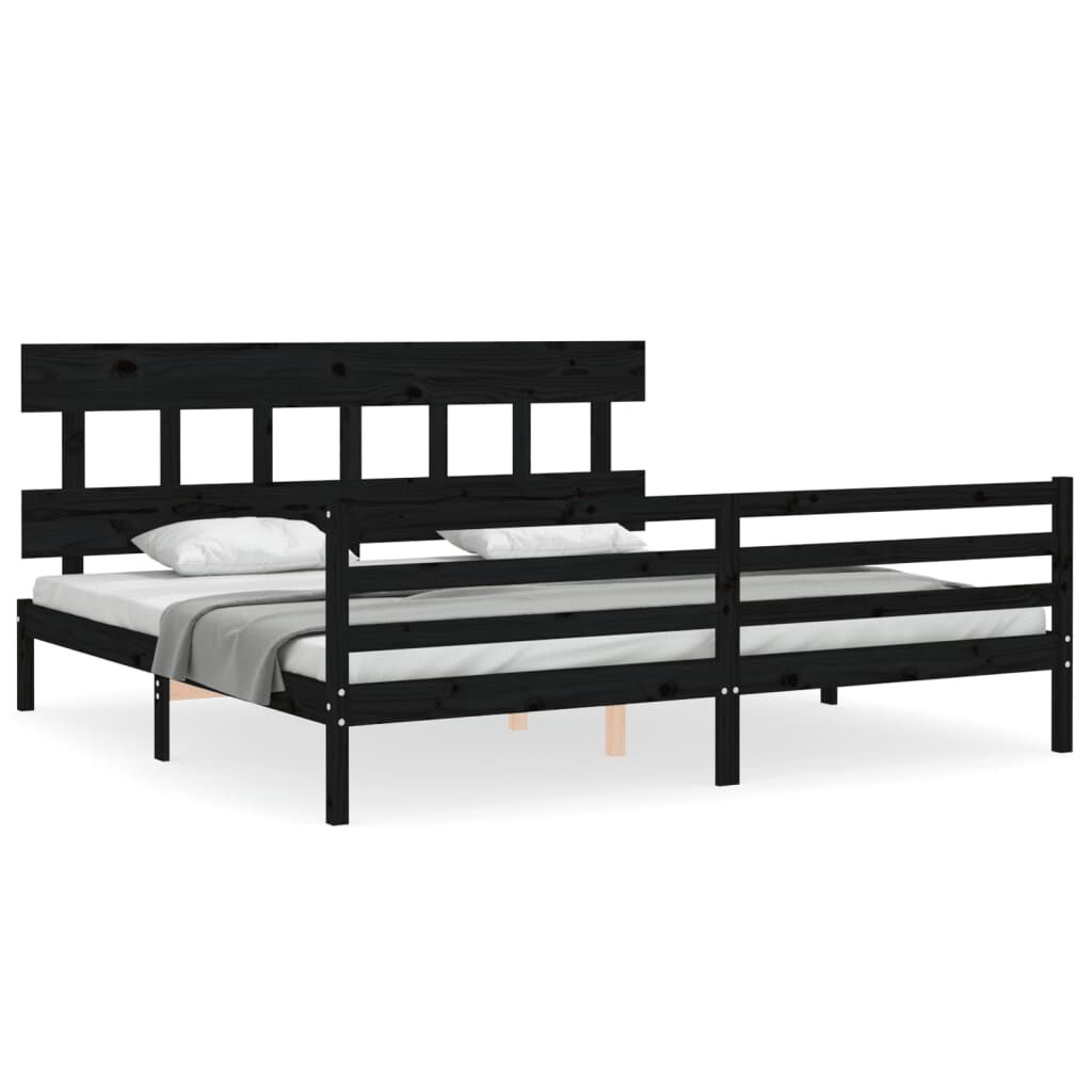 vidaXL Posteljni okvir z vzglavjem črn 200x200 cm trden les