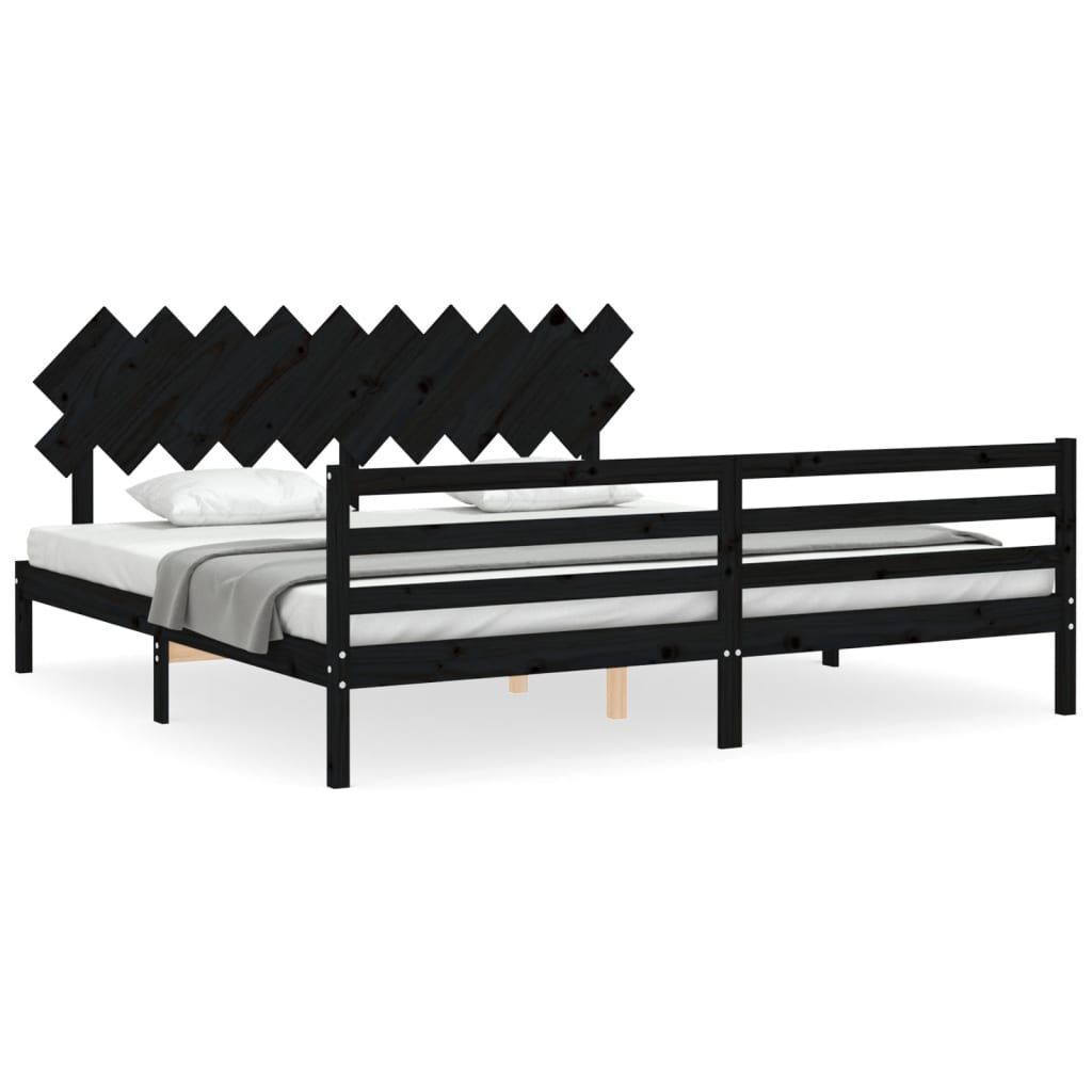 vidaXL Posteljni okvir z vzglavjem črn 200x200 cm trden les