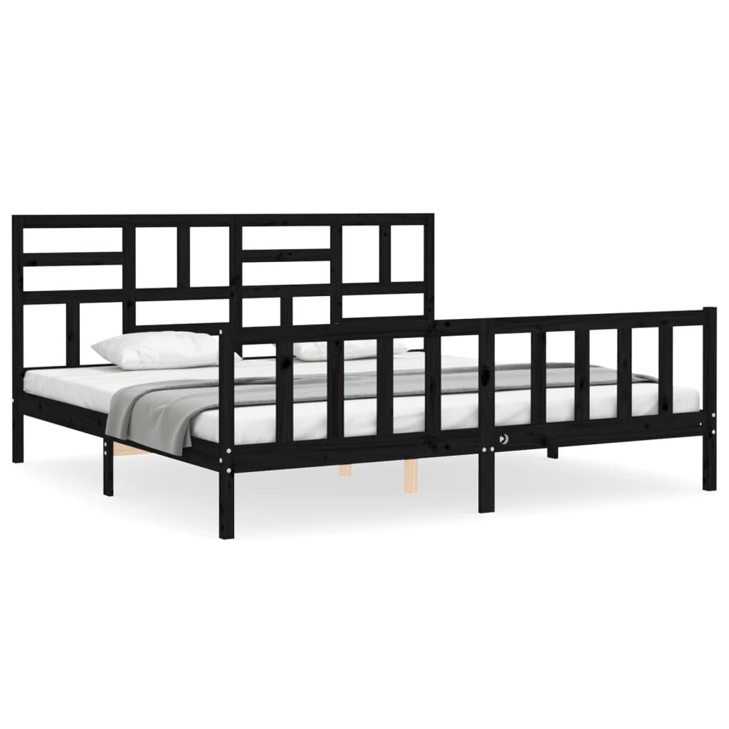 vidaXL Posteljni okvir z vzglavjem črn trden les