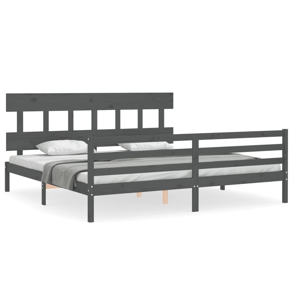 vidaXL Posteljni okvir z vzglavjem siv 200x200 cm trden les