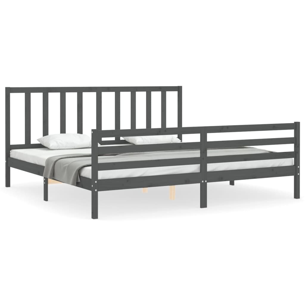 vidaXL Posteljni okvir z vzglavjem siv 200x200 cm trden les
