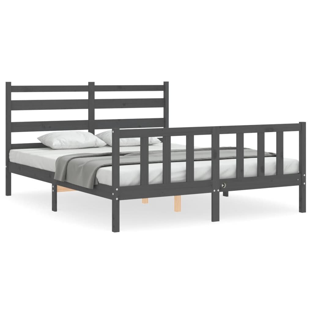 vidaXL Posteljni okvir z vzglavjem siv trden les