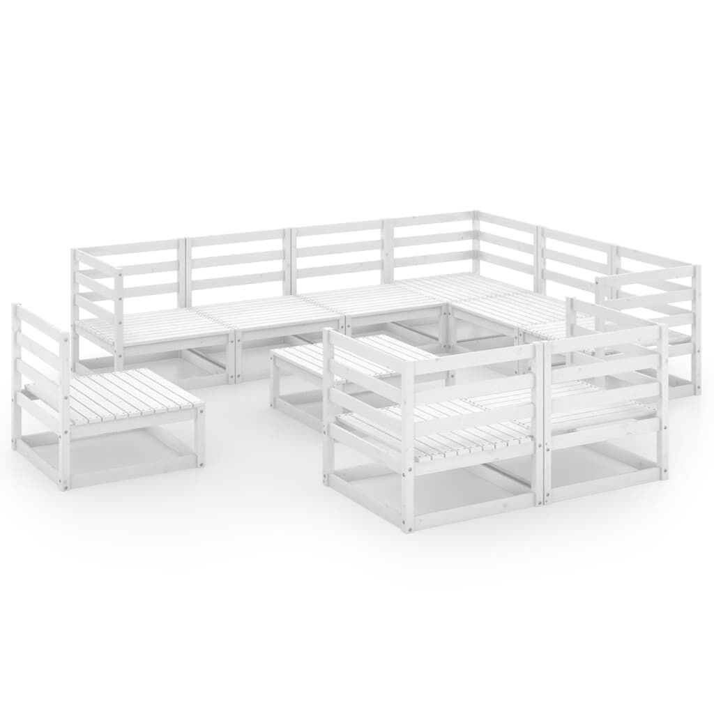 vidaXL Vrtna sedežna garnitura 10-delna bela trdna borovina