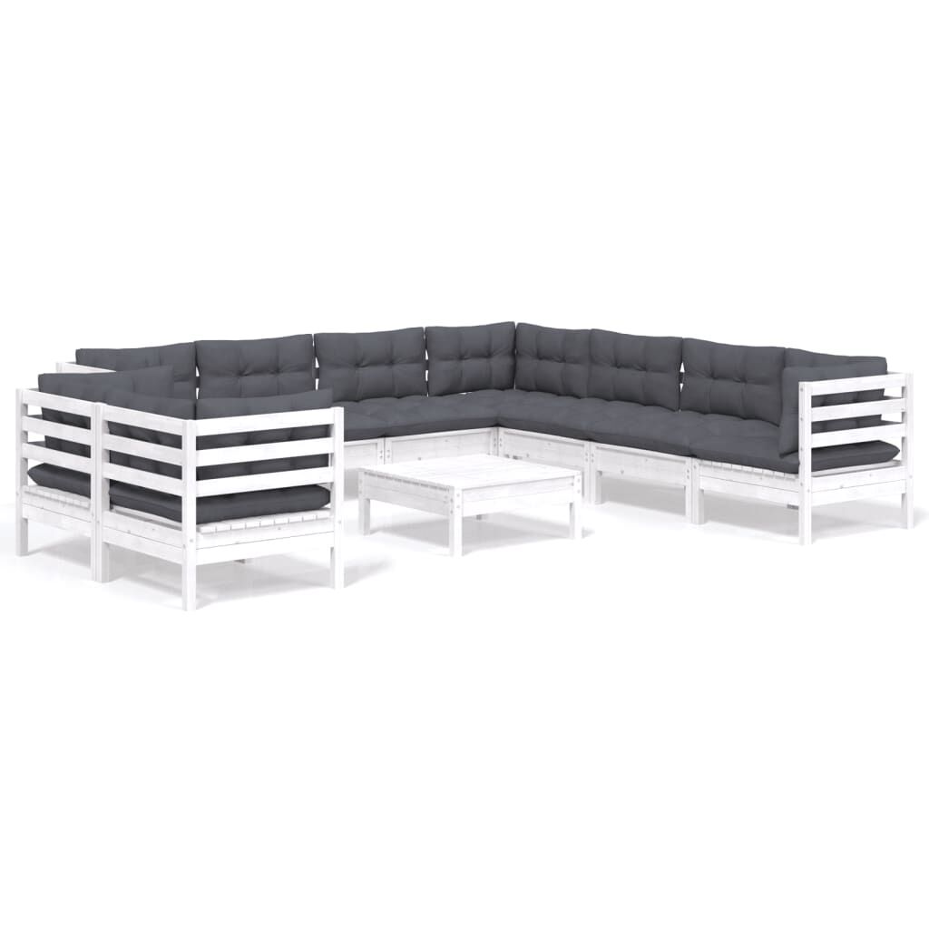vidaXL Vrtna sedežna garnitura 10-delna z blazinami bela borovina