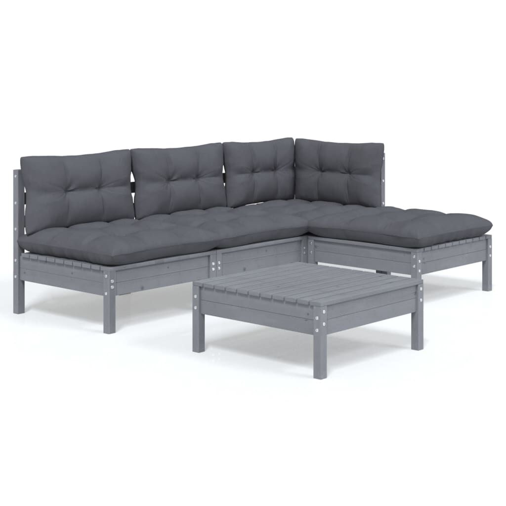vidaXL Vrtna sedežna garnitura 5-delna z blazinami siva borovina