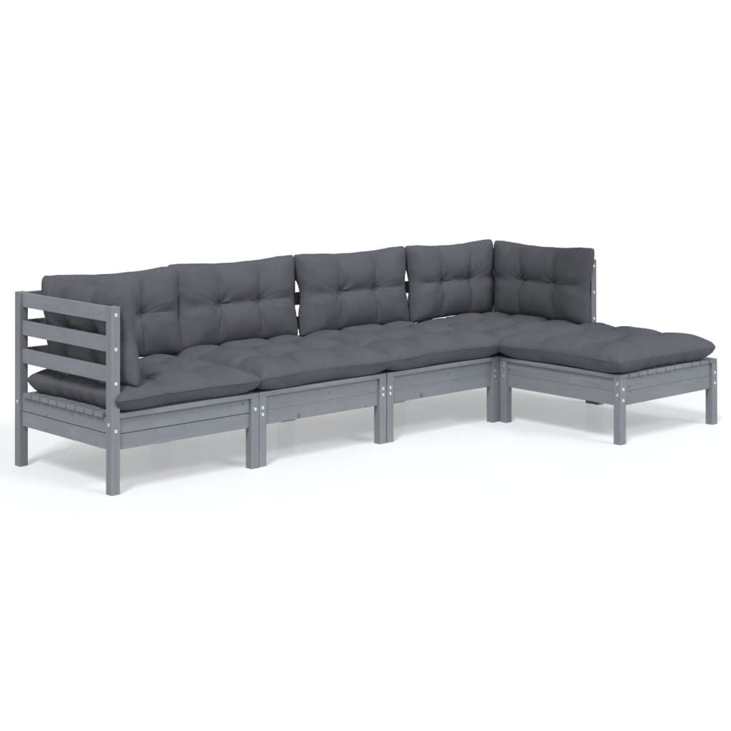 vidaXL Vrtna sedežna garnitura 5-delna z blazinami siva borovina