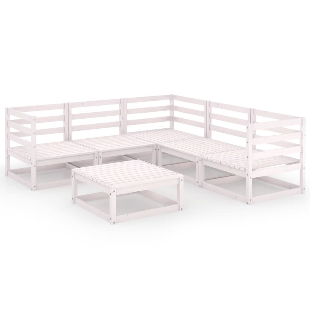 vidaXL Vrtna sedežna garnitura 6-delna bela trdna borovina