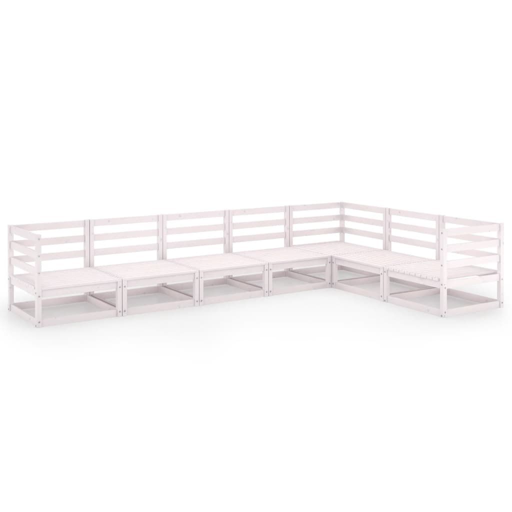 vidaXL Vrtna sedežna garnitura 7-delna bela trdna borovina