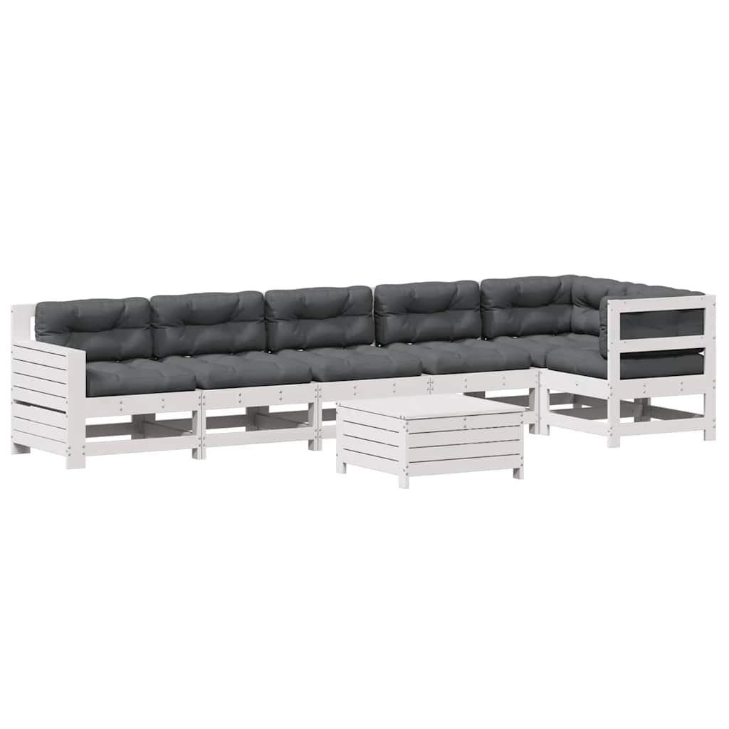 vidaXL Vrtna sedežna garnitura 7-delna z blazinami bela trdna borovina
