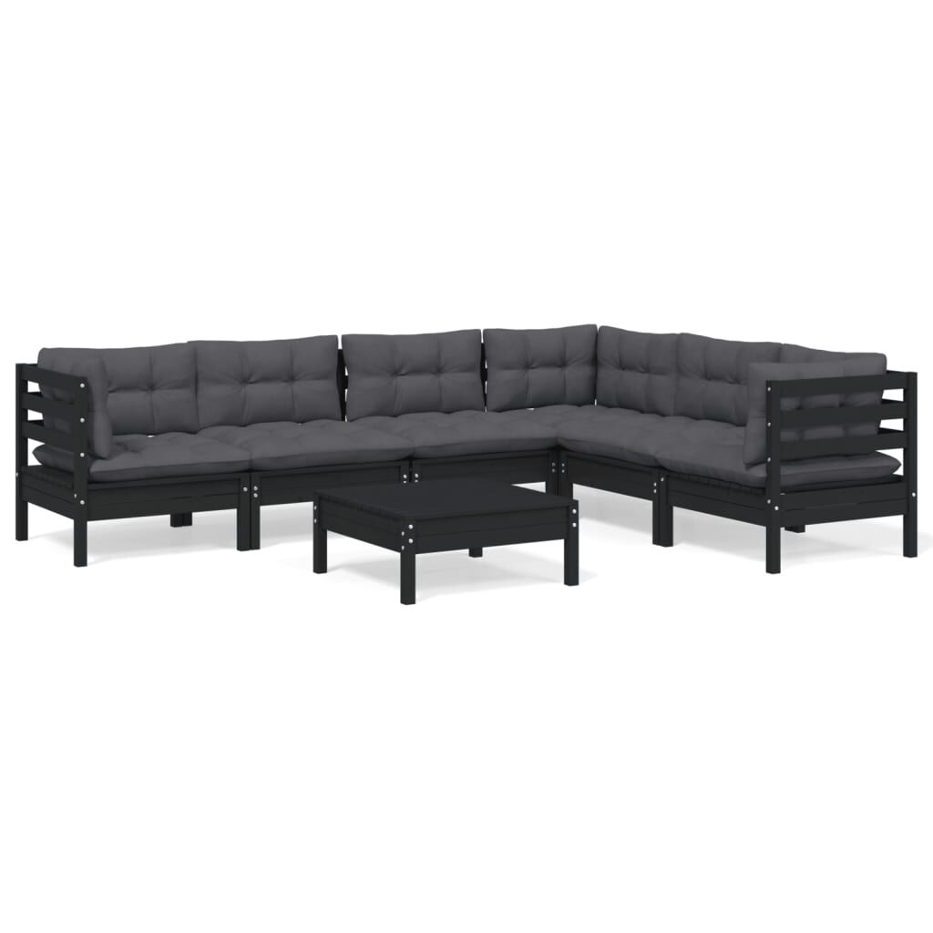 vidaXL Vrtna sedežna garnitura 7-delna z blazinami črna trdna borovina