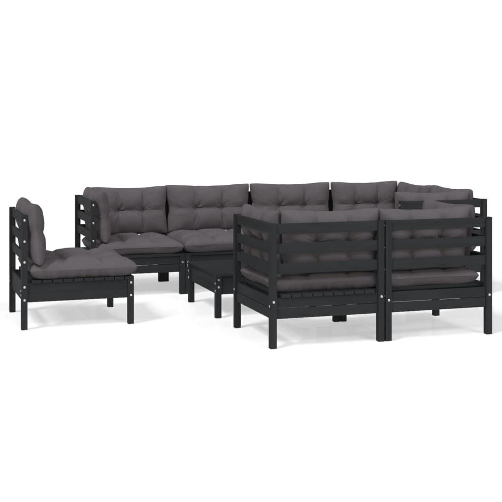 vidaXL Vrtna sedežna garnitura 9-delna z blazinami črna trdna borovina