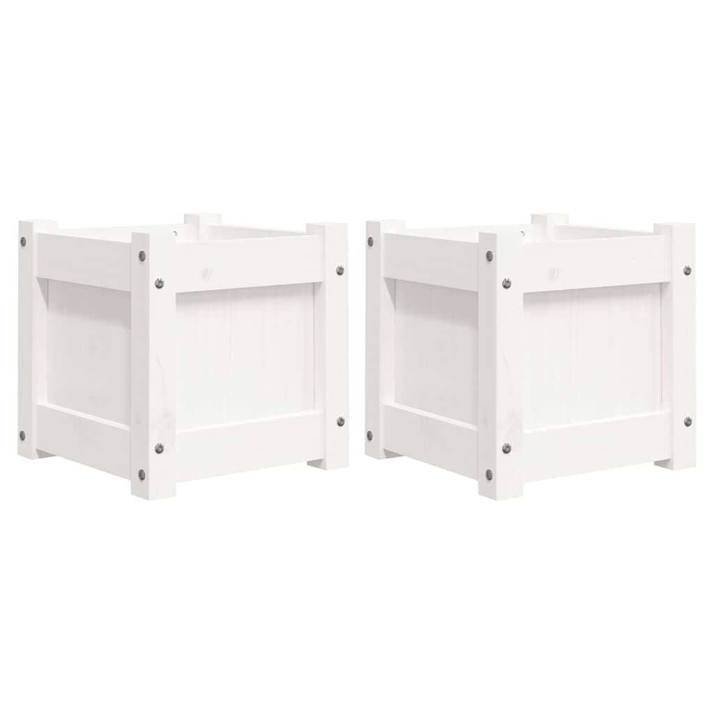 vidaXL Vrtno cvetlično korito 2 kosa bela trdna borovina
