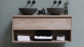 Kopalnica je tvoje osebno zatočišče, zato mora biti elegantna in udobna. Preoblikuj jo s pomočjo našega kopalniškega pohištva Če se sprašuješ, kakšno pohištvo se poda v kopalnico, je nakup kompleta kopalniškega pohištva preprosta rešitev. Nato lahko svoj prostor nadgradiš z rešitvami za shranjevanje v kopalnici , vodovodnimi inštalacijami in dodatki. Priljubljene enote imajo dvojne umivalnike in veliko prostora za shranjevanje, zato priporočamo, da si ogledaš našo ponudbo. Poleg tega lahko malenkosti, kot so puhaste brisače in zabavne zavese za prho, naredijo veliko razliko. Poišči navdih in ustvari svojo oazo!
