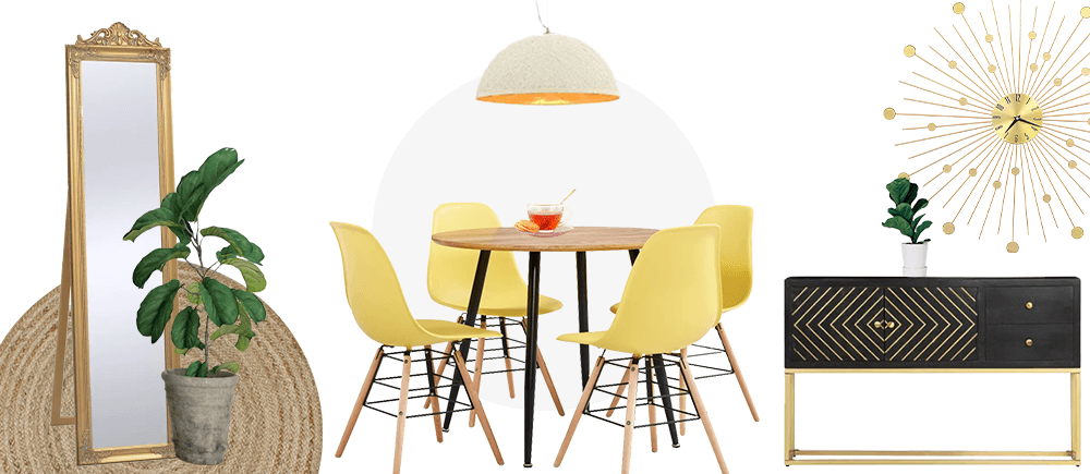 Zlata barva je že od nekdaj simbol bogastva in razkošja. Uporaba zlatih odtenkov v notranjih prostorih se skozi čas spreminja, od bogastva do kiča. Če boš poskrbel/-a za pravo ravnotežje, lahko z zlato barvo ustvariš razkošno in elegantno estetiko. Zlati odtenki so ponovno priljubljeni, ujeli so tudi našo pozornost. Uporabi zlate odtenke ter ustvari eleganten pridih ali pa poskrbi za nekaj posebnega s pomočjo klasičnih zlatih dodatkov. Svoj dom opremi z zlatimi dodatki ali pohištvom v zlatih odtenkih ter ustvari delikaten videz.
