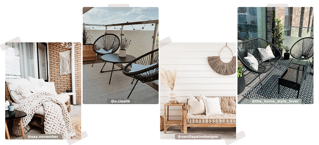 Za začetek si za navdih oglej trendovske majhne balkone. Ne glede na izbrano vrsto sedišča, priporočamo, da najprej pomisliš na udobje. Kot že prej omenjeno, so blazine nepogrešljive in ključne za doseganje udobja.