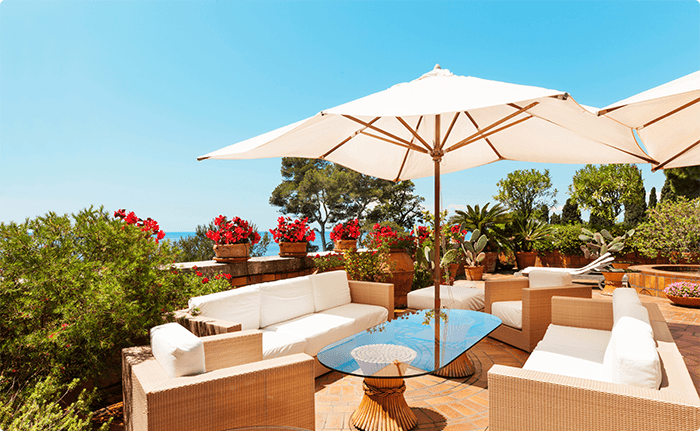 Najbolje je, da investiraš v primerno zaščito pred soncem. Za ustvarjanje prijetnega senčnega prostora so na voljo odlične rešitve, odvisno od tvojega zunanjega prostora. Na balkon se dobro poda senčno jadro, balkonsko platno ali celo majhna tenda. Če imaš vrt, priporočamo senčnik ali paviljon. Odloči se za rešitev, ki ustreza tvojemu prostoru ter mu doda nekaj stila. Torej, izberi živahne barve za prijetno preživljanje poletja na prostem.